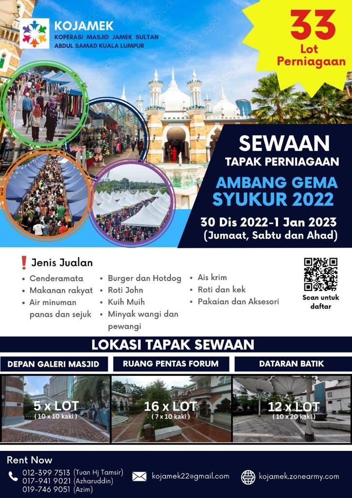 Melalui Rujuk DBKL.JPPP.700-6/51/1(39) bertarikh 19 Dis 2023 pihak DBKL telah memberi kelulusan kepada KoJAMEK sebagai penganjur Bazar Ramadan/Aidilfitri Tahun 2024 bertempat di Dataran Batik. Sebanyak 10 tapak berukuran 8’x8′ dengan jenis perniagaan jualan juadah ditawarkan kepada 10 anggota koperasi yang berminat. Mesyuarat ALK 1/2024 telah meluluskan 10 penyewa yang telah memohon dan perjumpaan bagi taklimat […]